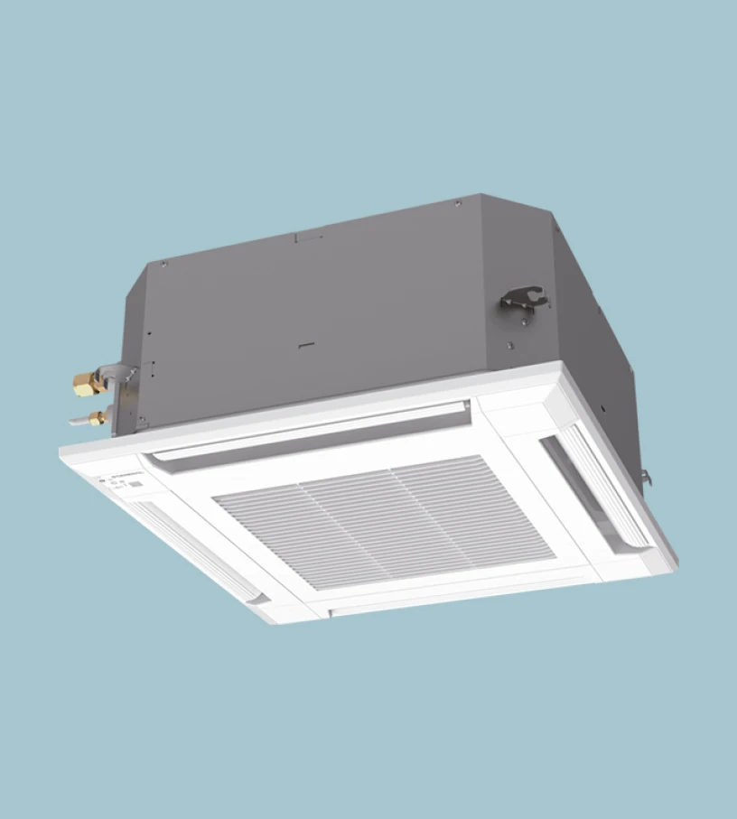 Om een tochtvrije werking in koelmodus te garanderen, kan je eenvoudig het uitblaaspatroon van deze lucht-luchtwarmtepomp aanpassen. De koele lucht verspreidt zich homogeen via het plafond in de ruimte. Je kan bovendien kiezen tussen 3 of 4 uitblaaszijden.